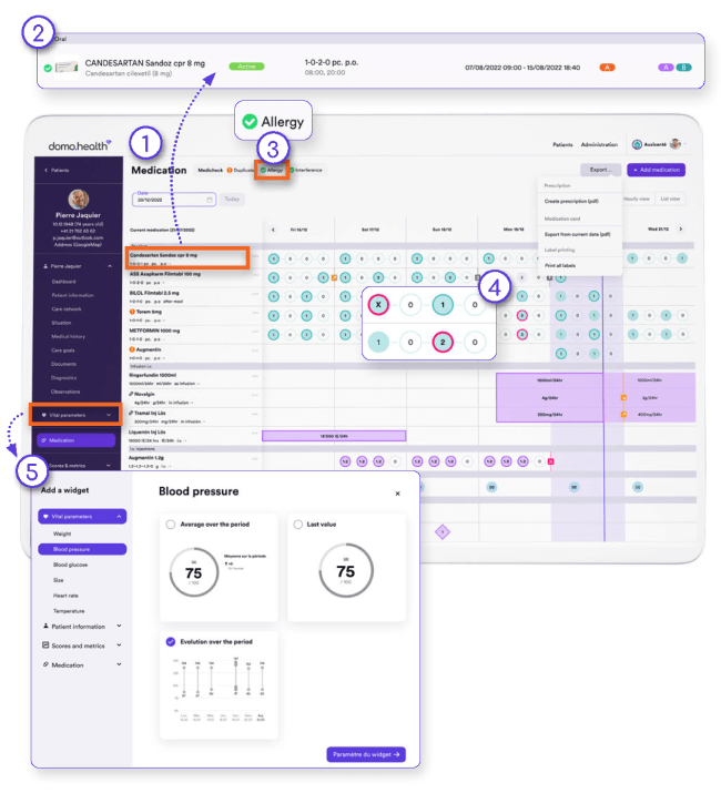 - Vérification automatique des allergies, des interactions, des doublons et des contre-indications
